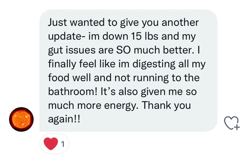 I’ve helped hundreds of people get the body of their dreams and resolve gut issues all while eating delicious food. Here’s what some of them have to say:
